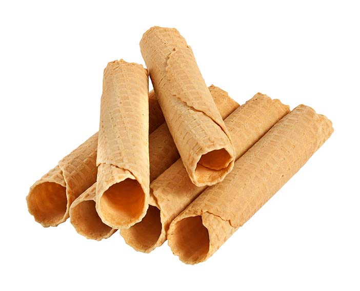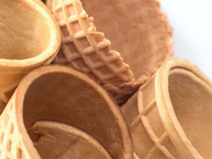 Modernste Backmaschinen produzieren pro Stunde bis zu 20.000 der knusprigen Eiswaffeln, die speziell für die Eiscremeindustrie hergestellt werden. Erhältlich in vielen verschiedenen Größen sowie als Waffelrolle. So ist garantiert für jeden Zweck das Passende dabei.